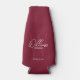 This design features personalised groomsman's name in white modern handwriting script font style and monogram in light burgundy red modern sans serif font style as background, with wedding details in white modern sans serif font style, on burgundy red background.