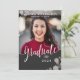 Script Photo Graduation Party Invitation with the grad's photo on the front and a second graduate photo on the back. Scripted word Graduate and silver shimmer hexagon shapes make this grad invitation elegant and chic.Celebrate your grad in style with these elegant graduation invitations.