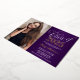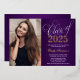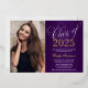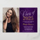 Elegant script font photo graduation party invitations to celebrate your big day. Classic school colours of gold, white and royal purple. A great choice for a high school senior graduation, college graduation or graduation party. THE SAMPLE PHOTO IS NOT INCLUDED. REPLACE WITH YOUR OWN PHOTO BEFORE ORDERING.