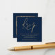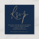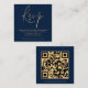 Script QR Code Gold Navy Blue Wedding RSVP enclosure making it convenient for your guests to reply by scanning your QR code leading to your wedding website reply page. A MINI size 2.5" square to enclose with your invitations. RSVP is in an elegant set script and easily personalise the rest of the words to your own and replace the sample QR code on the back with yours which will be generated automatically when you replace the sample url with your own.