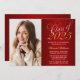 An elegant script font class of 2025 graduation party announcement. Shown in gold, white and red. Perfect for a high school senior graduation, college graduation or graduation party! Designs are flat printed illustrations/graphics - not actual gold foil. THE SAMPLE PHOTO IS NOT INCLUDED. REPLACE WITH YOUR OWN PHOTO BEFORE ORDERING.