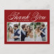 Script Red Three Photo Collage Wedding Thank You Postcard