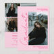 Modern and simple cool retro neon pink and dusty pink graduate script open house photo graduation. Add 4 of your favorite photos with a modern brushed style font and photo grid collage.