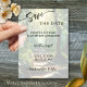 Elegant vellum wedding Save the Date overlay featuring a script text. Please note that this is only the overlay, the background invitation needs to be purchased separately. You can find the enchanted forest image in the collection.