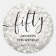 Script Silver Glitter Lights 50th Birthday Classic Round Sticker
