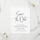 Script Simple Save the Date. This modern minimalist hand-lettered script wedding save-the-date card is perfect for couples who want to make a contemporary style statement. The elegant calligraphy combined with the black and white colour palette will create a timeless save-the-date your guests won't forget. Make a bold statement with this unique and stylish design!