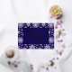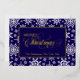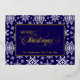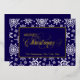 A swirly script and text on a snowflake pattern. Modern, classic and traditional winter wonderland with white falling snow on a dark blue background. The foil options are Gold, Silver and Rose Gold. Customise the text, the back text is optional, or delete.