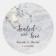 Script Sparkling Snow Winter Wedding Classic Round Sticker