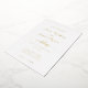 I love the design and the gold foil. The small font and printing let it down. . The font is too small on a number of different sections that the foil has blended/merged to make some of the writing look messy/harder to read/not professional. I used the standard template so would have hoped this would not be the case. I would have preferred for this to have been made clear and an option for some text to be in a normal ink if it was going to make it look this way.