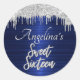 Script Sweet 16 Birthday Silver Glitter Blue Classic Round Sticker