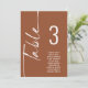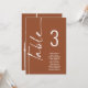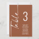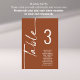 Script Terracotta Table Number Names Seating Chart. Edit you number for each table and add to your cart separately. Same design is on both sides, use for a hanging display so guests can find their seat or on each table. Easily personalise the table number and your guest names. The same design is on both sides and will update simultaneously as you change the words to your own.
