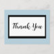 A simplistic script thank you postcard in black and white. The blue background color can be changed to any color that you prefer.