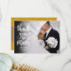 An elegant white script thank you card featuring your favourite wedding photo, name and special date. The reverse features gold hearts confetti and you can personalise with your special thank you message. A perfect way to say thank you! Designed by Thisisnotme©