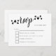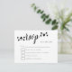 A convenient way for your guests to RSVP to your invitations is by postcard with your address details already there so they can just complete the front and pop it back in the post to you. This elegant design has RSVP in lowercase script with swashes on the first and last letter with 6 heart shape leaves each end. The rest of the text is easily personalised including your return name and address details on the reverse.
