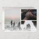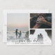 "Script Typography Save the Date 4 Photo Collage Announcement." Simple. Modern. Elegant script handwriting typography with flourishes for a Save the date with four photo openings, three on the front and a larger image on the back. Graphically designed by internationally licensed artist and designer, Audrey Jeanne Roberts, copyright.