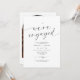 This engagement party invitation features an cute script font with an effortlessly minimalist layout. This wedding collection is perfect for the classic and minimalist couple. Easily change all of the colours, fonts, and add your own photo to the backside for a personal touch.