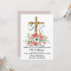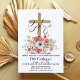 Script Watercolor Floral Cross Baptism Invitation features a simple cross accented with red, coral, blush and white flowers and greenery with your Baptism Invitation information below. Personalise by editing the text in the text boxes provided. Designed by ©Evco Studio www.zazzle.com/store/evcostudio