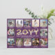 Script What a Year! 12 Photo Collage Purple & Gold Holiday Card