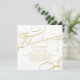 All custom text and invitation details are located on the lower half of the card. The back of the card features a full scripted calligraphy pattern.