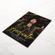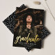 Simple graduation announcement featuring the graduate's photo with "graduate" in real gold foil script. Personalize the front of the photo graduation announcement by adding the graduate's name, school name, and graduation year. The announcement reverses to display a pattern of white sprinkles with a black background or color of your choice.