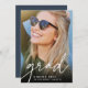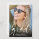Simple and modern photo graduation announcement features "grad" along the bottom in casual hand lettered script, with your graduate's name and school, and graduation year beneath.. Ideal for high school, college, or advanced degree graduations. Add a personal message to the back, along with an additional photo.