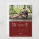 Modern scripted "graduate", arch frame photo graduation announcement/invitation. Features, white typography on dark red backgrounds.