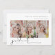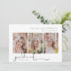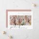 Signature script, 3 photo snapshot, graduation announcement. Features, 3 vertical portrait photos on front and solid dusty rose pink colour backing.