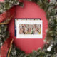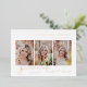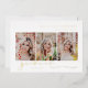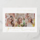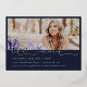 Graduate script, in foil. Graduation 4 photo announcement/invitation. Single photo on back with navy blue background colour and celebration invitation details.