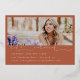 Graduate script, in foil. Graduation 4 photo announcement/invitation. Single photo on back with rust orange background colour and celebration invitation details.