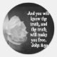 SCRIPTURE John 8:32 Black / White Flowers Classic Round Sticker