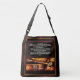 It's very roomy. The fabric is soft and flexible, and the strap is wide and adjustable to fit across the body. The printing is true to the photo.