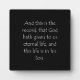 1 John 5 11. Get yourself re-verse-d to faith with this inspiring bible verse or scripture quote to find christian healing strength, encouragement and powerful uplifting to overcome hard times. Show and wear beautiful religious wisdom of love, hope, peace, joy and happiness to comfort yourself and to plant a seed of belief in your spirit or use it as a gift for the ones you love. Amen.