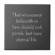 John 3 15. Get yourself re-verse-d to faith with this inspiring bible verse or scripture quote to find christian healing strength, encouragement and powerful uplifting to overcome hard times. Show and wear beautiful religious wisdom of love, hope, peace, joy and happiness to comfort yourself and to plant a seed of belief in your spirit or use it as a gift for the ones you love. Amen.