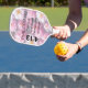 Hand-designed pink watercolor floral background with scripture Philippians 4:13 and cross. Play to win with this encouraging scripture designed pickleball paddle.