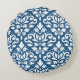 Scroll Damask 2Way Lg Ptn Dk Blue on White Round Cushion