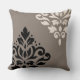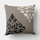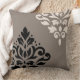 Scroll Damask Art I Black & Cream on Taupe Cushion