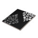 Scroll and leaf damask in a vintage style design, with gray and white detail on a black background.