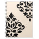 Scroll and leaf damask with black detail on a cream background in a modern style art print.