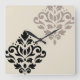 Scroll Damask Art I Black Taupe Cream Square Wall Clock