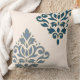 Scroll Damask Art I Blues Gold (line) Cream Cushion