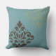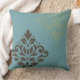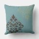 Scroll Damask Art I Brown Gold (line) Teal Cushion