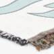 A quality printed throw has its advantages. This is a much finer weave throw than its loopier cousins, and though lighter, it is worth the investment for custom room accessorizing. The back is much prettier than the typical brown, and the fringe on the long sides very vivid, the selvage nicely done. Before photographing, I washed the throw in cold water, delicate, with a thicker woven throw the same size. On tumble dry low, this throw was dry in half the time as the other. This is a very practical quality if you use throws for furniture covers or to wrap up in frequently. The sleekness of the fabric makes it a great layer for accenting or protecting without the feeling of sitting on too much stuff. Perfect for napping or when you feel a light chill coming on. The color printing is beautiful and on this fabric, matched the design and color of my Photoshop image. This is an advantage for blending room fabrics and colors. The fringe on the short sides prints the colors from the design image and therefore varies from the side fringe. I streaked a white fractal line through the plaid pattern to give the illusion of weaving. This printed as crisp as an illusory thread, and put some white in the short side fringe, showing another advantage of print vs loomed- for artistic purposes, line lines, detail, and color integrity can be planned and preserved. My loomed throws have color limitations and more of a needlepoint texture. Print throws reproduce an exact image. The throw felt a little stiff straight out of the package, but this went away in the first delicate wash. Of course I searched the wash water for ink or bleeding and there was none.