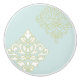 Scroll Damask Art I (outline) Wt Gld Lt Teal Ceramic Knob