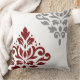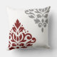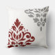 Scroll Damask Art I Red & Grey on White Cushion