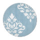 Scroll and leaf damask with white detail on a light blue background in a modern style art print.