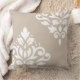 Scroll and leaf damask with white detail on a light taupe background in a modern style art print.