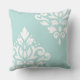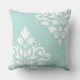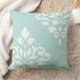 Scroll Damask Art I White on Light Teal Cushion