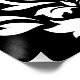 Scroll and leaf damask with white detail on a black background in a modern style art print.
