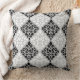 Scroll Damask Big Ptn B&W on Grey Cushion