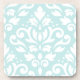 Scroll Damask Design White on Duck Egg Blue Coaster